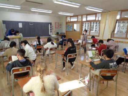 2年生は書写。字の形に気をつけようでした。ちょうど終わったところです。