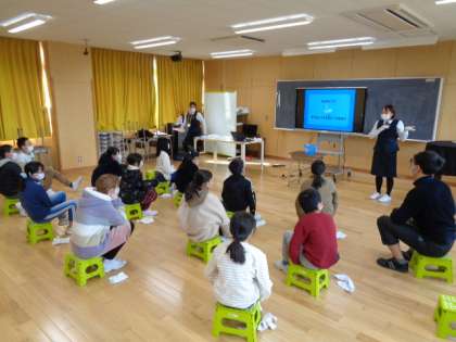 ダスキンの方々に来ていただいて、「キレイのタネまき教室」があり、1年生、2年生、5年生それぞれに授業をしていただきました。