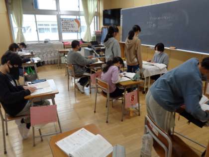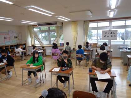 5年生は国語。意見文をつくるためにクロムブックを使っています。