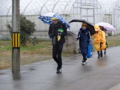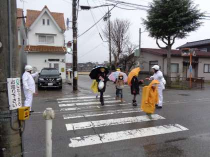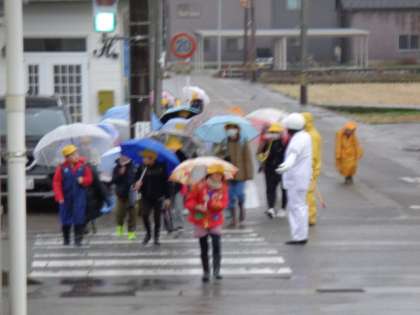 雨の朝となりました。はまっ子たちは今日も元気に登校しています。