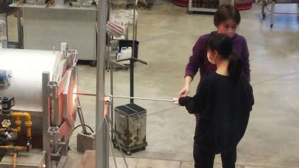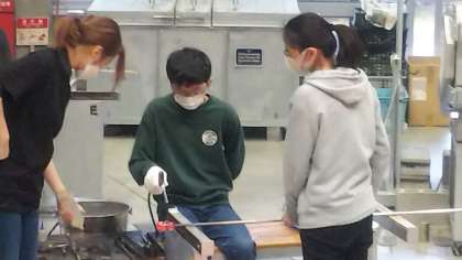 6年生は卒業記念制作のために、富山ガラス工房に来ています。