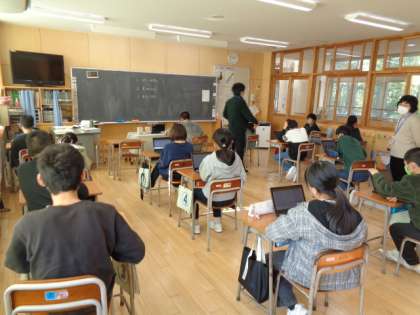 6年生は卒業式で歌う歌について、クロムブックを使ってアンケートをしていました。