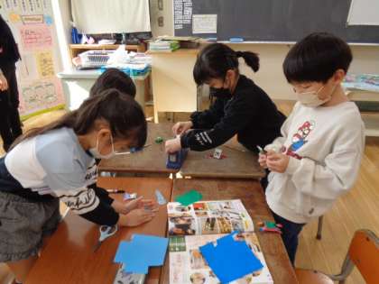 1月20日(金) 1年 図工「すきまちゃんの すきな すきま」の学習