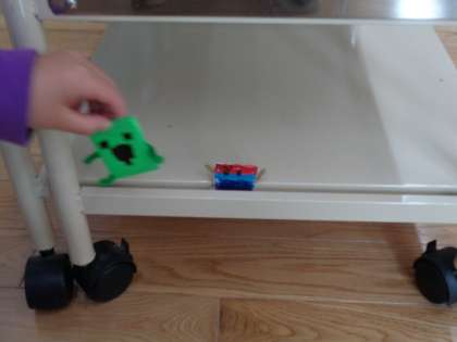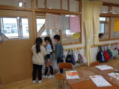その後、教室内で、すきまちゃんのお気に入りのすきまを見つけて飾り、友達と見つけ合ったり、並べて飾ったりして楽しみました。