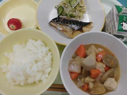今日から1週間は給食週間です。今年も「本の世界を味わおう」と題して本に登場する料理がでます。今日は、「男子★弁当部」にちなんだ献立でした。エノキの梅肉和えは、主人公と母親が朝ごはんに一緒に作った料理です。主人公の兄がみんなで食べるために大きな鍋で作ったのっぺいは、つややかで温かくておいしかったです。