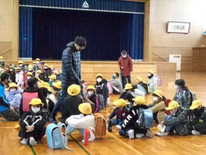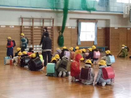 14時15分に体育館に集合。登校班ごとに、担当の先生と確認して集団で下校しました。