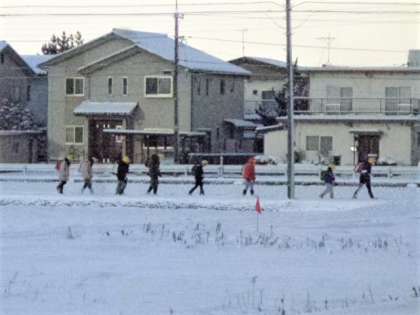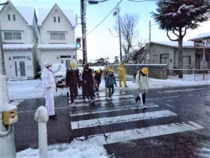 今朝も気温が氷点下となり、積雪は少なかったものの道路は凍結していました。はまっ子たちは今日も元気に登校しています。今日から通常の学校生活に戻しています。下校時刻は通常となり、集団下校も予定しておりません。