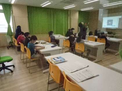 4年生は2つのグループに分かれて算数の授業です。大きな面積について考えています。