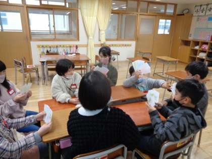 3年生の学活の時間は係のイベントでした。生き物係による生き物カードトランプです。テントウムシやカマキリなど、手作りの虫カードを使ってじじぬきをしました。楽しい時間を過ごすことができました。