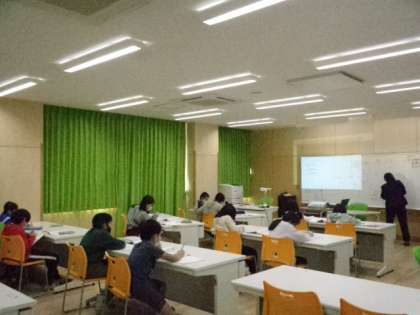 5年生は図工。風船を膨らませてランプシェードを作っています。