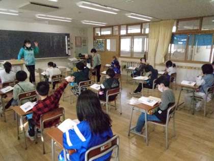 3年生は道徳。「きょうりょくクラス」です。