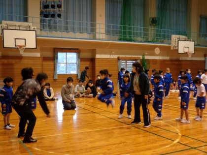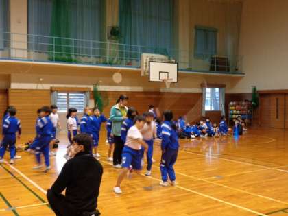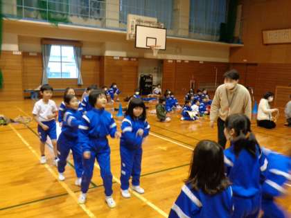 最後は、「学年対抗 長なわ8の字とび」です。開始前にそれぞれの学年で円陣を組んだりかけ声をかけたりして盛り上がっていました。どの学年も目標回数を上回ろうとがんばりました。