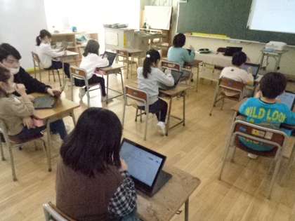 2年生はクロムブックを使って意見を出しています。