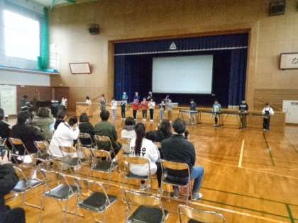 SDGsダンスは笑顔いっぱいで元気に踊りました。SDGsについて伝わる発表となりました。2グループに分かれ、1人ずつ自分の「過去・現在・未来」について発表では、自分の将来について、今考えていることを発表しました。