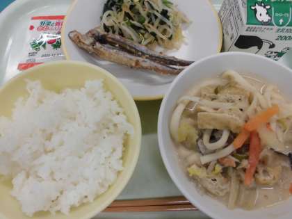 白ごま豆乳うどんは、豆乳の味がしっかりして具だくさんのおいしいうどんでした。子供たちもおいしかったと話していました。