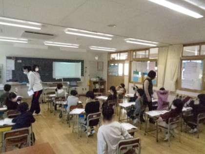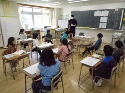 1年生は漢字の練習です。スクールサポーターの他に、学びのアシストの学生さんも支えています。