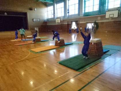3年生は体育。跳び箱にどんどん挑戦しています。
