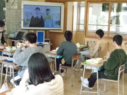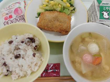 今日は、卒業お祝い献立でした。今日から卒業を祝う週間となり、お昼の放送で6年生さんが紹介されています。6年生との思い出をふり返りながらいただきました。