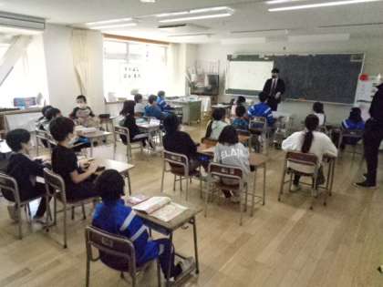4年生は外国語活動。いつもとは違うALTが担当。今日も楽しく活動しています。