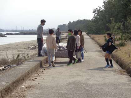 卒業プロジェクトとして、奉仕活動をしています。8日(水)には、浜黒崎海岸へ行き、ゴミ拾いを行いました。たくさんのゴミが落ちていることに気付き、子供たちは一生懸命拾っていました。