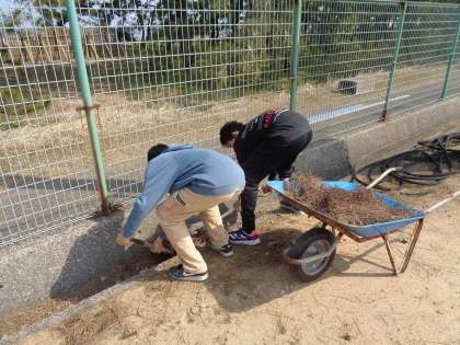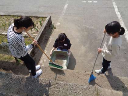 今日は、敷地内の清掃を行いました。前庭やグラウンド、非常階段の3カ所をきれいにしました。子供たちは、限られた時間の中、黙々とほうきで掃いたり、松の葉を拾ったりしていました。