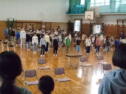 全校児童で初めて卒業式の流れを確認しました。実際に歌も歌ってみましたが、1回目から大きな声が出ていました。一週間前ということで、卒業式への気持ちが高まってきているようです。