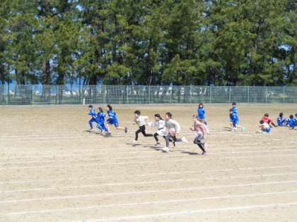 今年度最後の記録会です。春からタイムを縮めることに取り組んできました。今日の結果はどうだったでしょうか。みんなゴールを全力でかけぬけました。空も海も青くとても気持ちがよかったです。