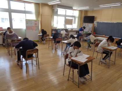 1年生と6年生の授業の様子です。6年生は、学力調査の問題に取り組んでいます。