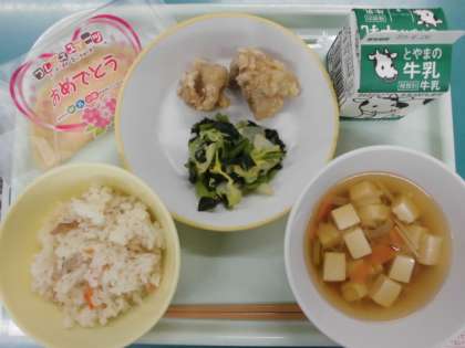 今日は1年生の入学をお祝いする献立でした。