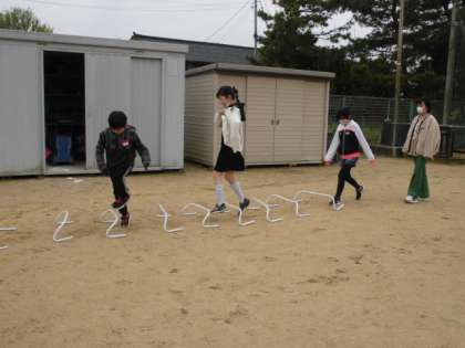 のびのびタイムの様子です。火・木・金曜日は体力つくり活動をしています。少し肌寒い気候でしたが、はまっ子は元気いっぱい運動していました。
