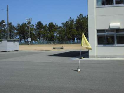 光化学オキシダント注意報発令訓練を行いました。注意報が発令されると、黄色旗を立て校舎の外に出ないよう知らせます。