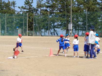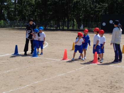 運動会に向けて、体育の時間に折り返しリレーの練習中をしています。