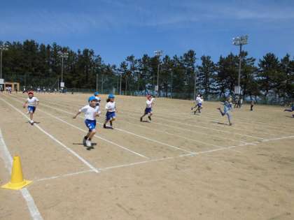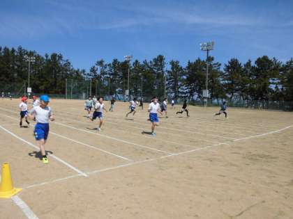 火曜ののびのびタイムは、体力つくり活動です。力一杯走っています。