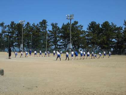 3・4年生はバトンパスの練習をしています。