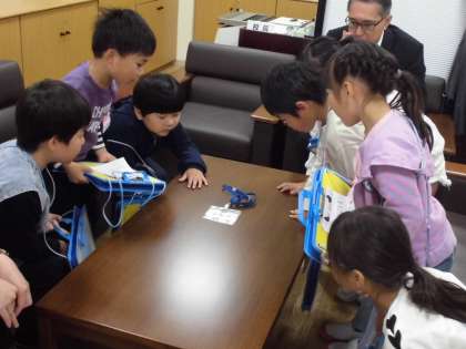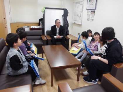 1年生は生活科の学習で、校長室へ探検に行きました。校長室ではふかふかのソファーに座らせてもらい、1人ずつ校長先生に質問をしました。「校長先生のお名前はなんですか?」の質問には、首からさげていた名札をみんなに見せてくださり、興味津々の子供たちでした。校長先生のこと、校長先生のお仕事のこと、たくさん知ることができました。優しい校長先生とたくさんお話しできてとてもうれしそうな子供たちでした。