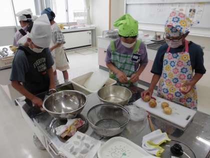 調理実習の様子です。ほうれん草とジャガイモをゆでました。