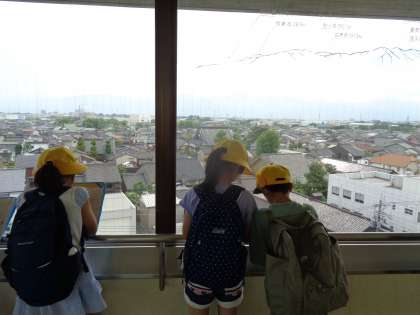 今日は、フィーダーバスと市内電車に乗って市役所に行き、展望塔から富山市の様子を実際に自分の目で確かめました。建物の様子や交通の様子がよく分かりました。