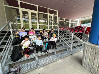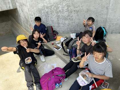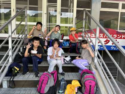 牛岳温泉スキー場のゲレンデ下でお弁当です。