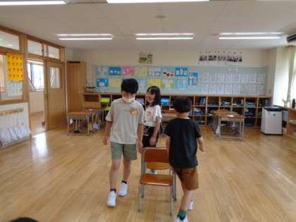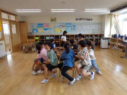 今日のロングわくわくタイムは、遊び係が企画した「いすとりゲーム」をしました。