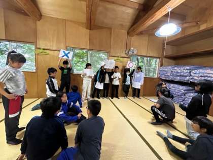 班ごとにゲームや出し物をしました。1班は、まるばつクイズ、2班は、学校あるある、3班は怖い話をしました。