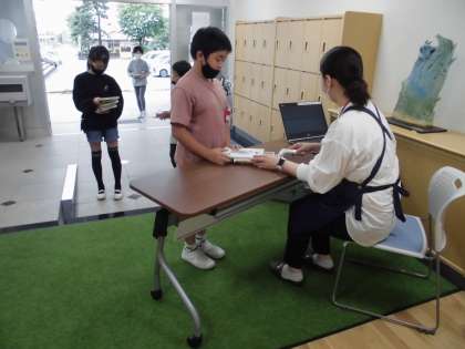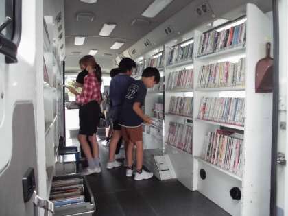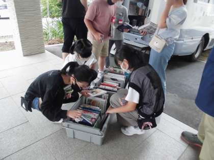 自動車文庫の日でした。子供たちは楽しそうに本を選んでいました。
