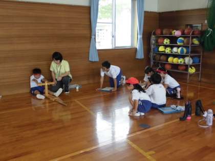 スポーツテストを行いました。縦割り班ごとに、それぞれの種目を回りました。