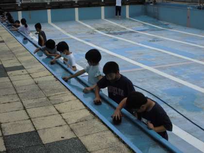 来週のプール開きに向けて、5・6年生がプール清掃をしました。