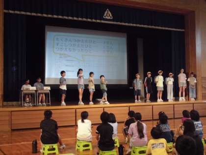 学習参観後、保護者の方と一緒に、体育館で学校保健委員会を行いました。今年のテーマは、「心の健康」です。体つくり委員会の子供たちは、劇の発表をしました。委員会の子供たちは、今日のために6月中、それぞれ一生懸命練習してきました。本番では、その成果を出し切ることができ、よかったです。