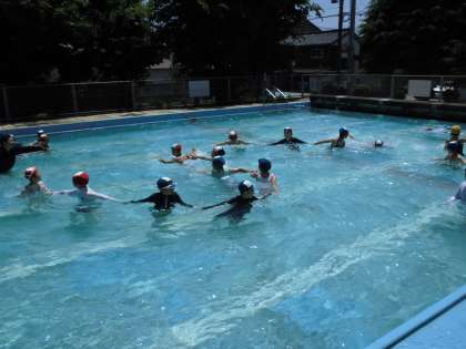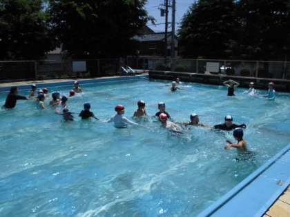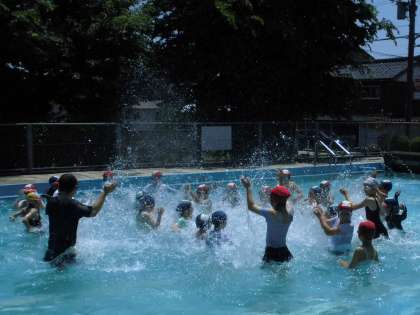 3・4年生は、手つなぎ鬼をして楽しみました。プールの水が気持ちよさそうでした。