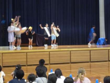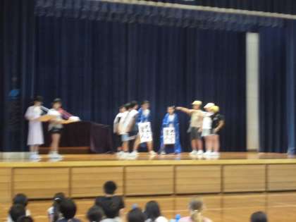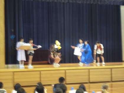 今日のロングわくわくタイムは、全校児童で運営委員会の発表を聞きました。