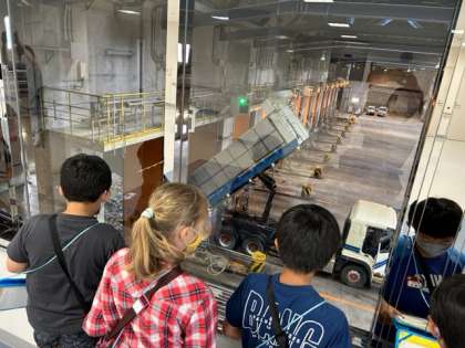 クリーンセンターの見学の様子です。子供たちは、ごみピットにたくさん集まってくるごみの量やクレーンの大きさに驚いていました。