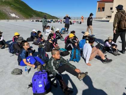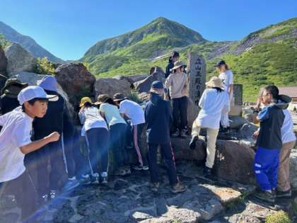 室堂に着きました。みんな元気です。 準備運動を終え、まもなく、登り始めます。