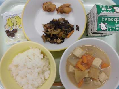 8月31日(木)今日の給食 公開日 2023/09/01 更新日 2023/09/01 給食 今日の給食の献立は、 ・ごはん ・ほたての香味焼き ・もずくのチャプチェ ・ごまけんちん ・黒糖大豆 ・牛乳 です。