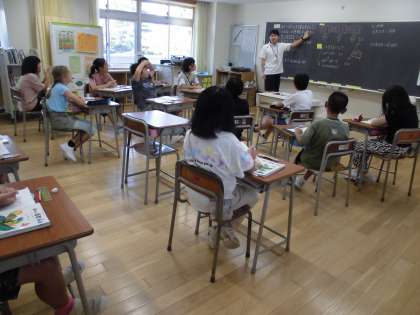 3年生、社会です。スーパーマーケットについて学習しています。学習したことをもとに、2限目はスーパーマーケットへ校外学習に出かけます。